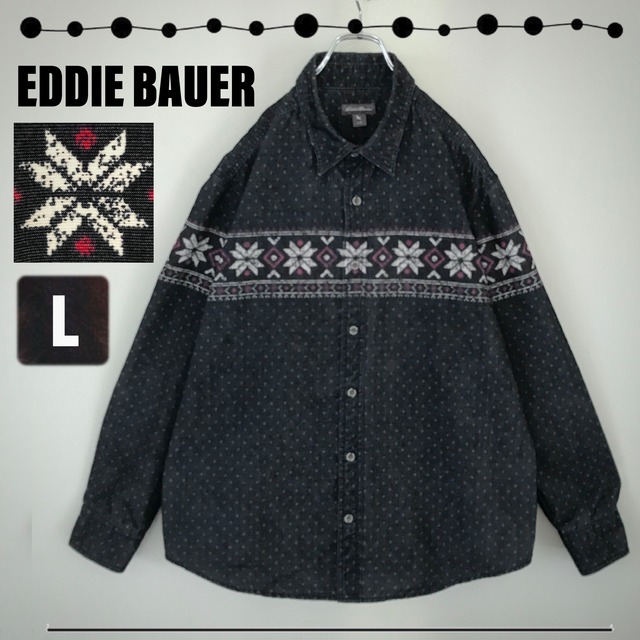EDDIE BAUER エディーバウアー★ノルディック柄★抜染プリント★コーデュロイシャツ★USAメンズL