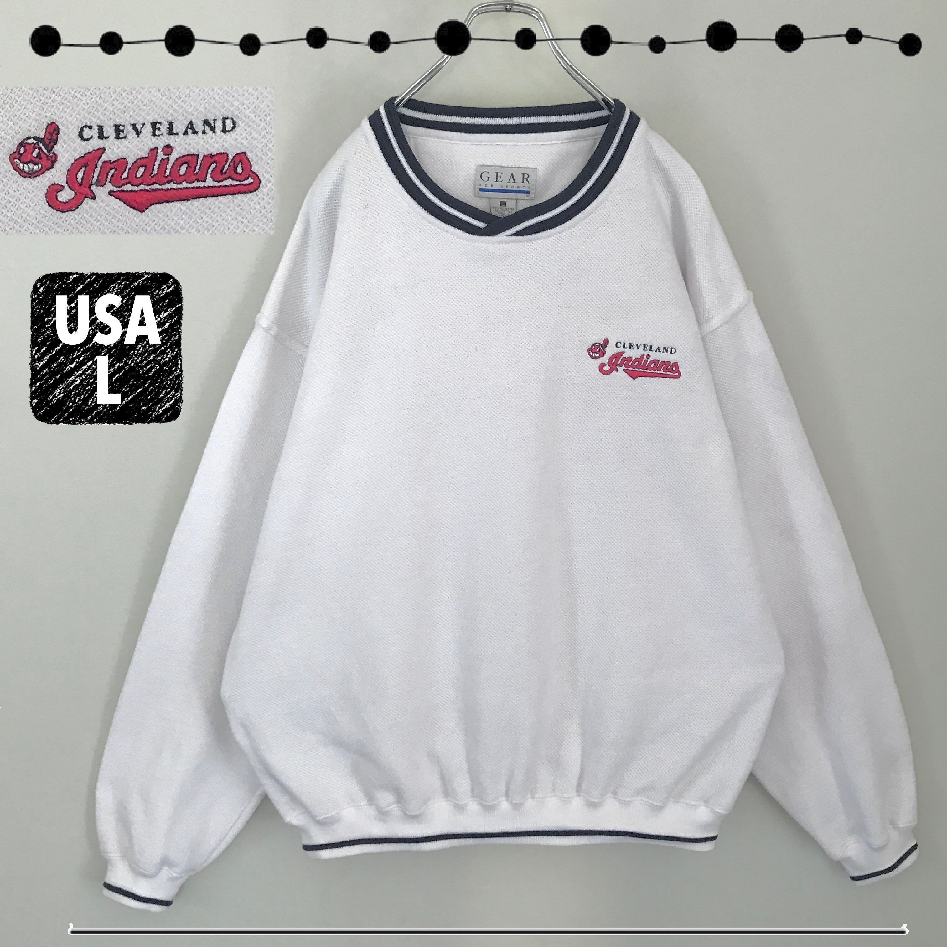 MLB Cleveland Indians クリーブランド インディアンス★GEAR FOR SPORTS製★チルデンスタイル★Vネックスウェット★ラインリブ★USAメンズL