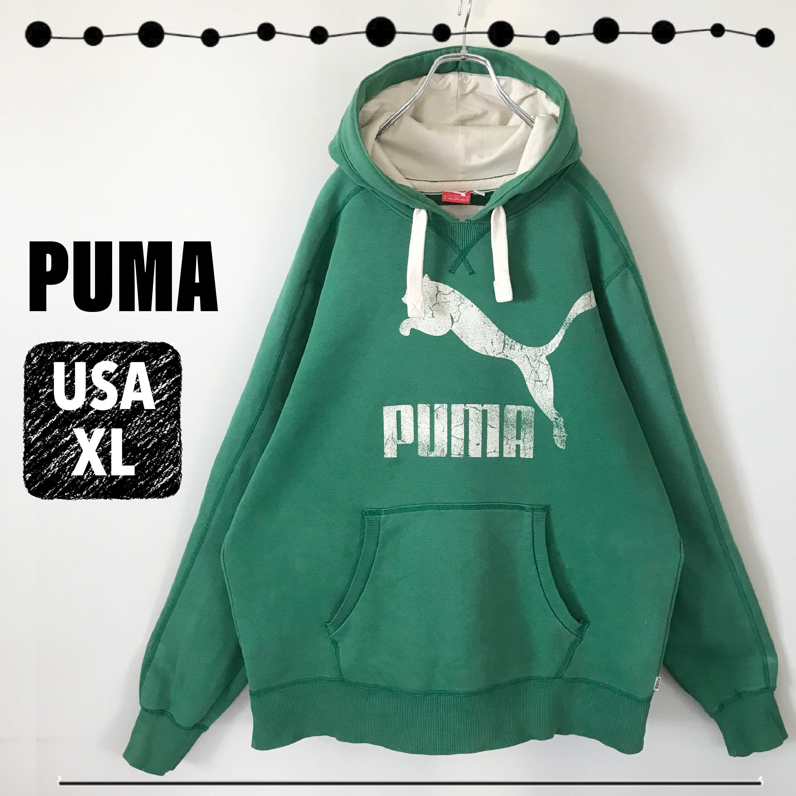 PUMA★プーマ★海外モデル★ダメージロゴプリント★プルオーバー スウェットパーカー★USAメンズXL