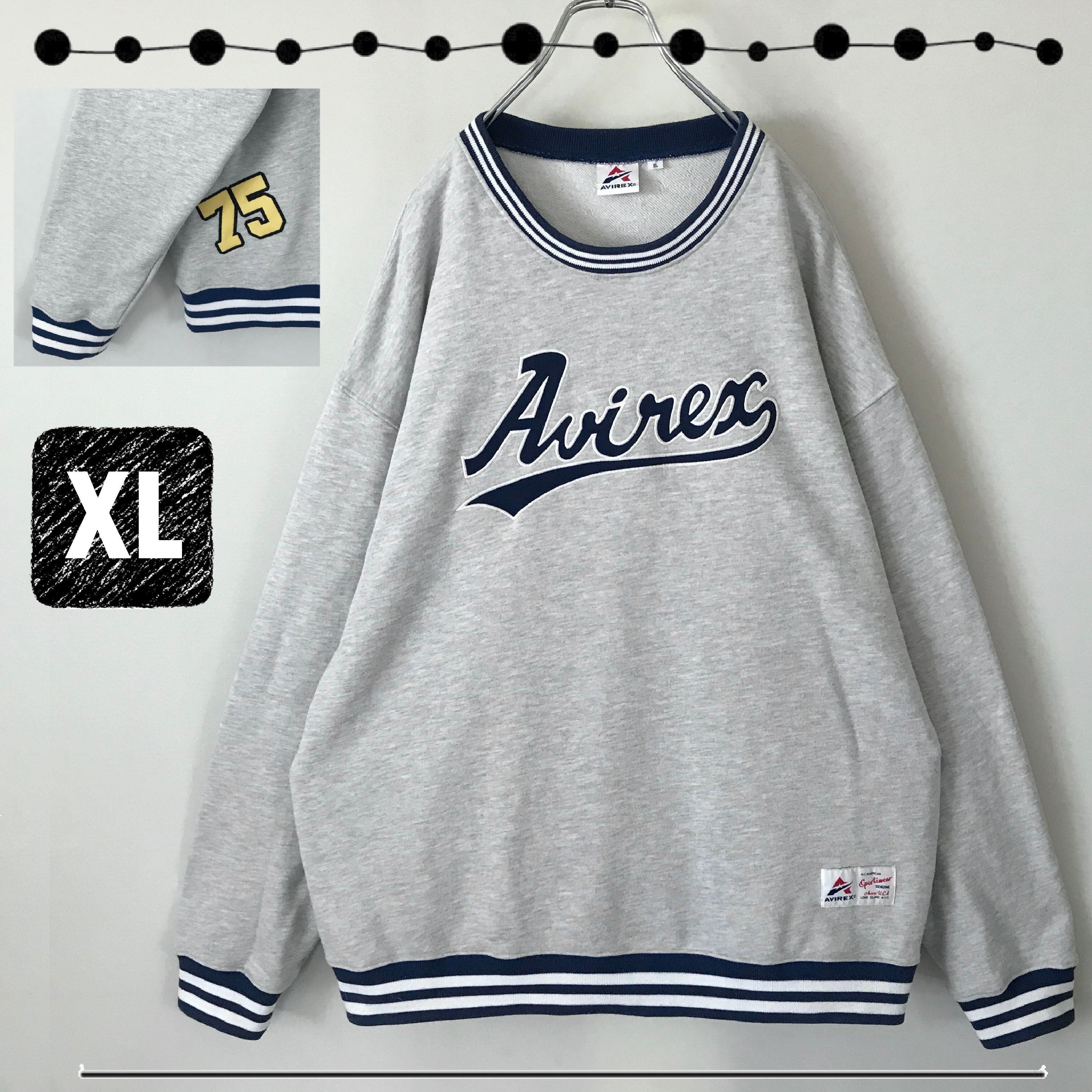 avirex アビレックス★ベースボール ラインリブ クルーネックスウェット★BASEBALL CREWNECK SWEATSHIRT★裏毛パイル★メンズXL