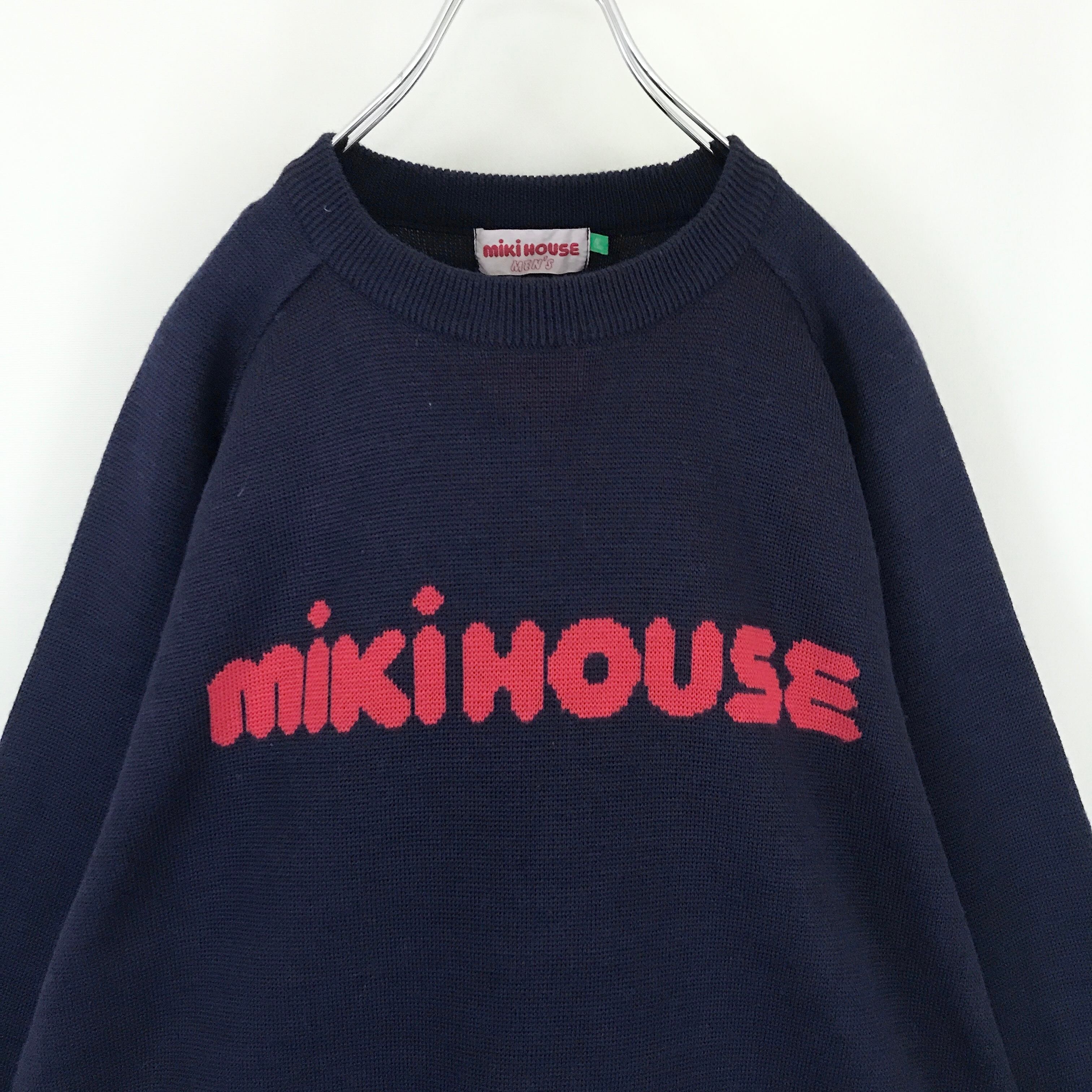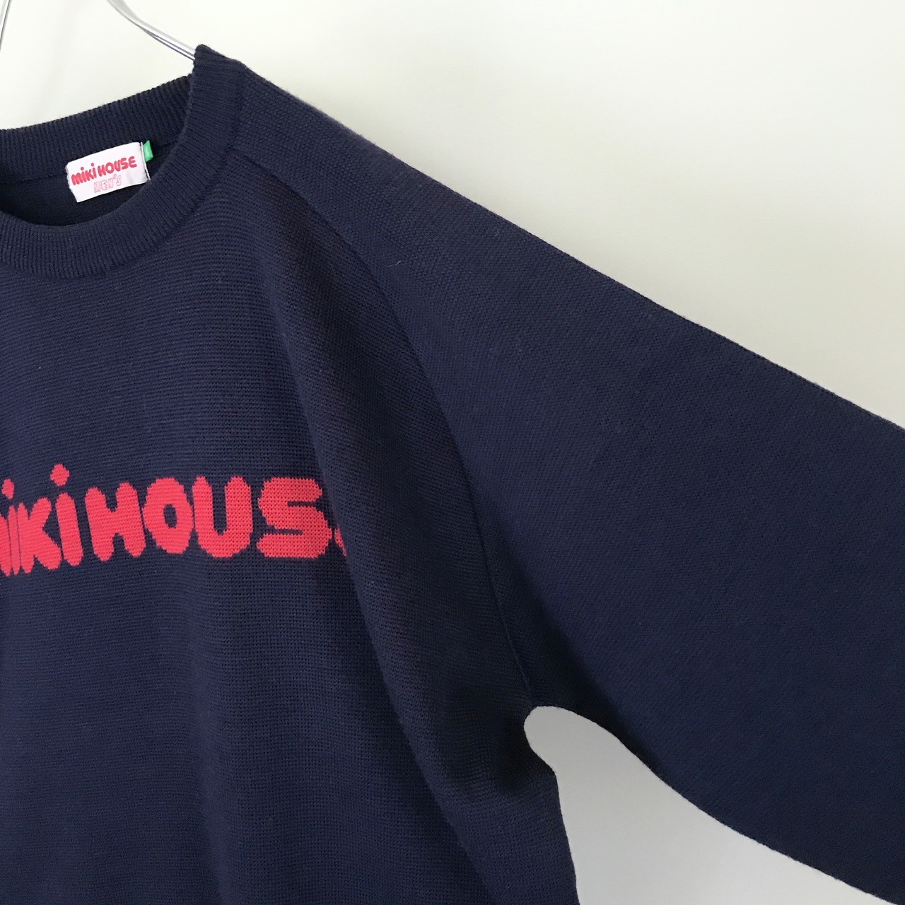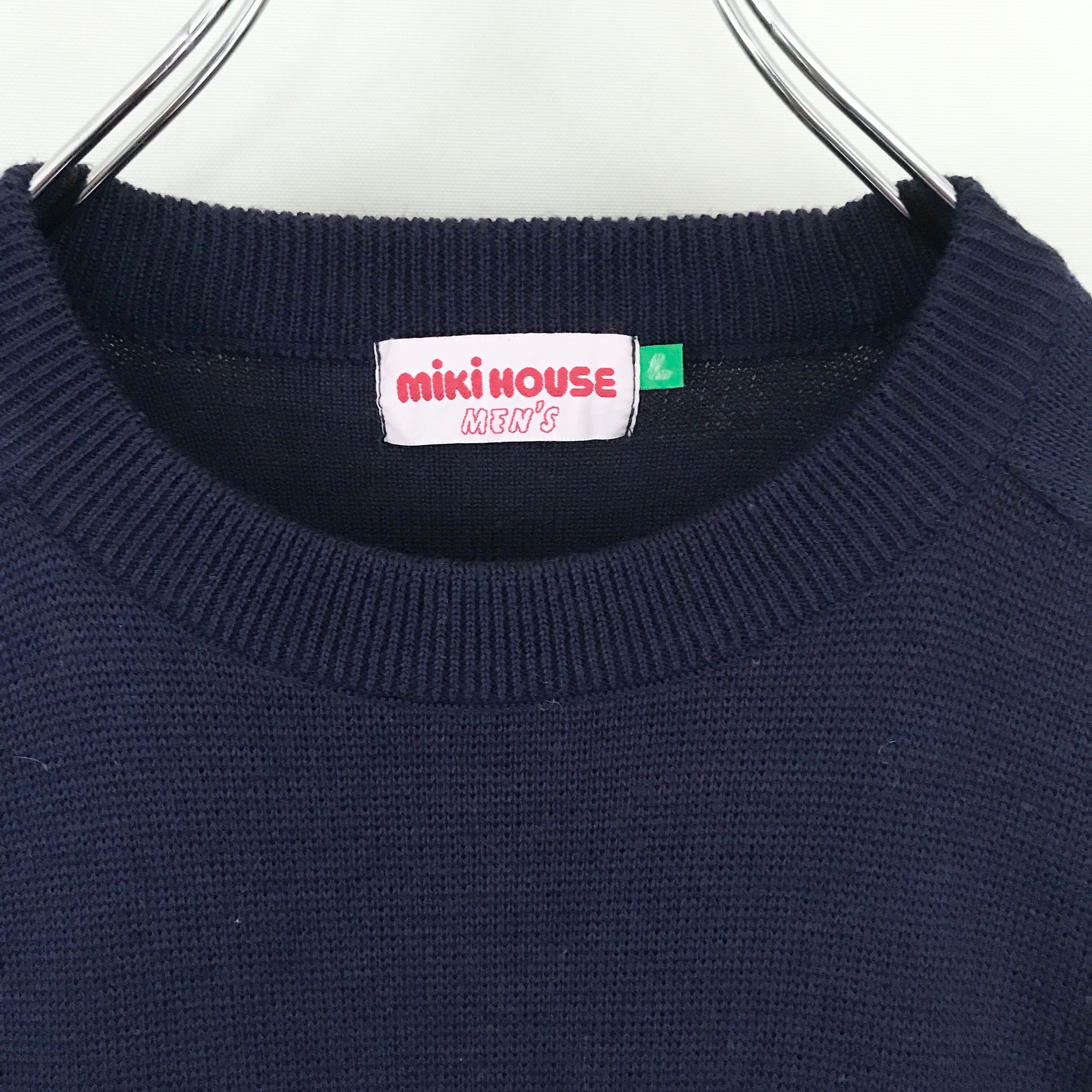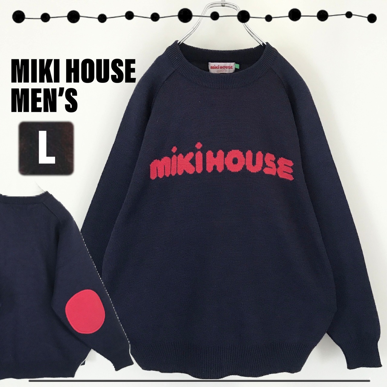 90sビンテージ★MIKI HOUSE MEN'S ミキハウス★シグネチャーロゴ★クルーネックセーター★エルボーパッチ★メンズL