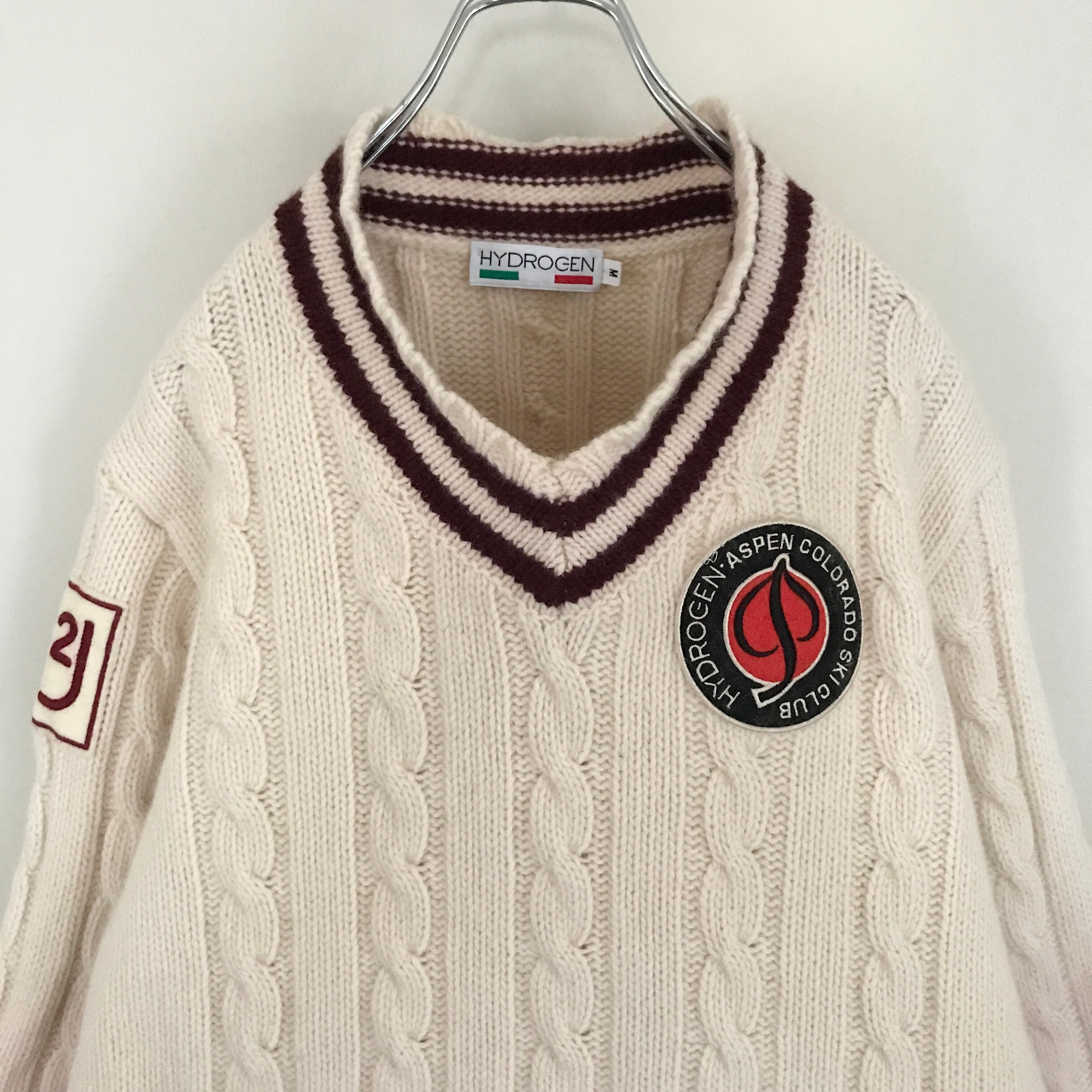 HYDROGEN ハイドロゲン★チルデンセーター★アラン編み★カシミア混★エルボーパッチ★テニス ゴルフ★メンズM