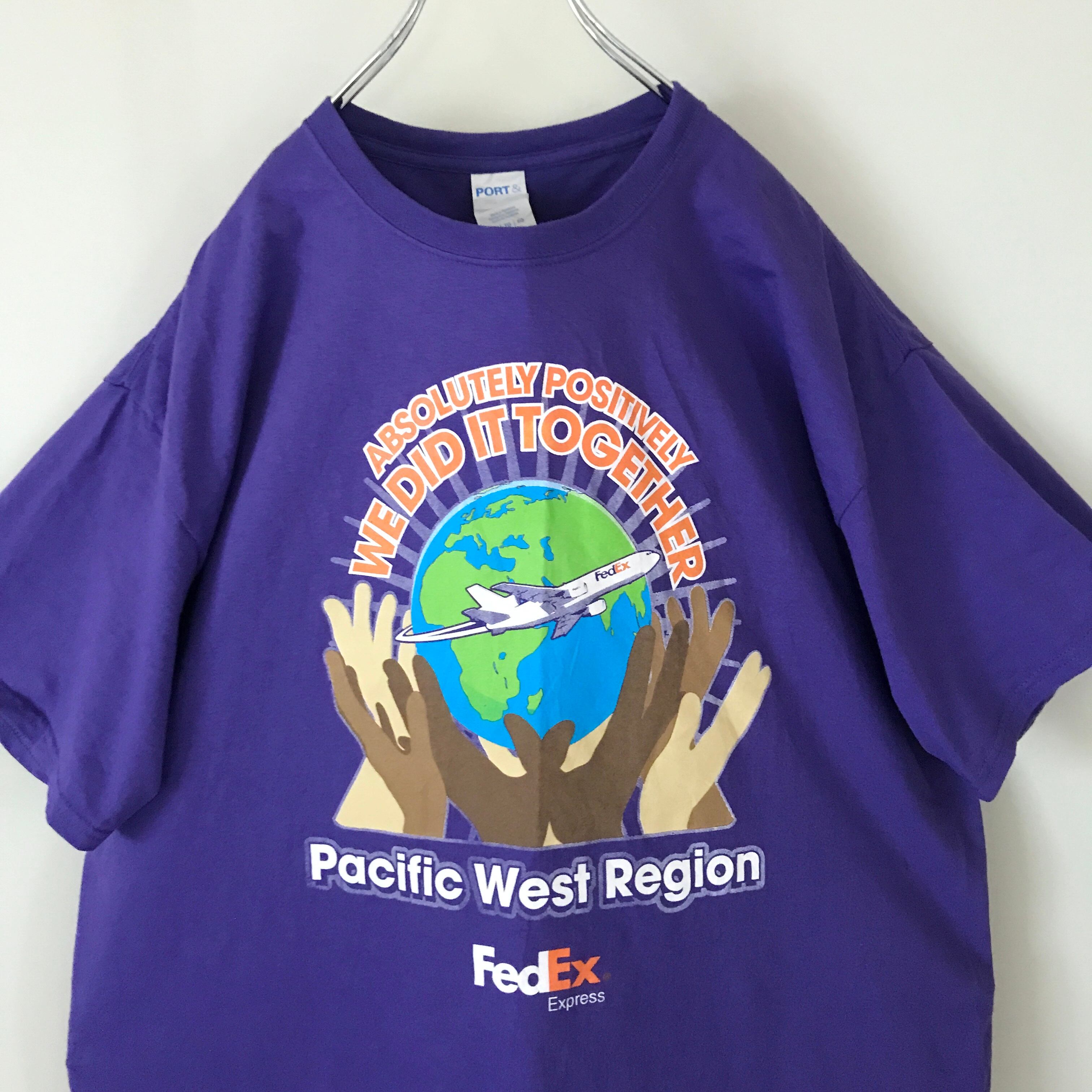 FedEx フェデックス★企業プロモTシャツ/アメリカ古着★航空機グラフィック★USAメンズXL 2406J036